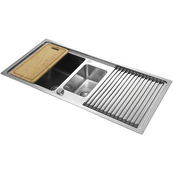 RESPEKTA Edelstahlspüle, edelstahlfarben, Edelstahl, inkl. Abtropfgitter, inkl. Schneidebrett, inkl. Ab- und Überlaufgarnitur