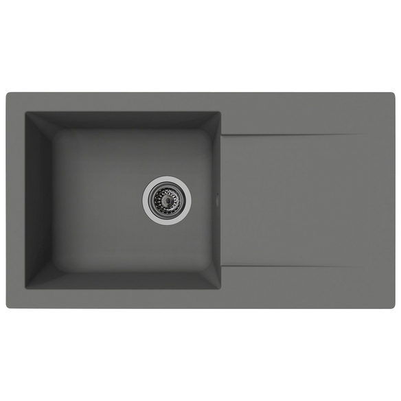 RESPEKTA Einbauspüle, betongrau, Verbundstoff-Mineralstoff-Glasfasern/Kunstharz, leicht zu reinigende Oberfläche, reversibel einbaubar, inkl. Ab- und Überlaufgarnitur