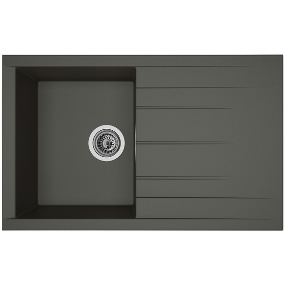RESPEKTA Einbauspüle, betongrau, Verbundstoff-Mineralstoff-Glasfasern/Kunstharz, leicht zu reinigende Oberfläche, reversibel einbaubar, inkl. Ab- und Überlaufgarnitur