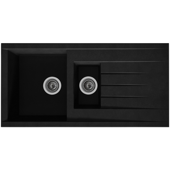 RESPEKTA Einbauspüle, schwarz, Verbundstoff-Mineralstoff-Glasfasern/Kunstharz, leicht zu reinigende Oberfläche, reversibel einbaubar, inkl. Ab- und Überlaufgarnitur