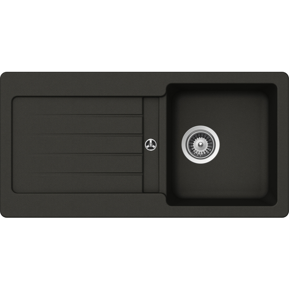 SCHOCK Küchenspüle, Cristalite Typos D-100S Asphalt, Granit | Komposit | Quarz, 86 x 43,5, Für den Einbau von oben, Spüle mit Becken nach rechts oder links einbaubar, Reinigungsfreundliche und widerstandsfähige Oberfläche, Material besteht aus bis zu 80% aus natürlichem Quarzsand (Granit), Mit automatischer Ablauföffnung (Excenterbedienung)