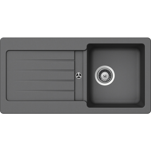 SCHOCK Küchenspüle, Cristalite Typos D-100S Croma, Granit | Komposit | Quarz, 86 x 43,5, Für den Einbau von oben, Spüle mit Becken nach rechts oder links einbaubar, Reinigungsfreundliche und widerstandsfähige Oberfläche, Material besteht aus bis zu 80% aus natürlichem Quarzsand (Granit), Mit automatischer Ablauföffnung (Excenterbedienung)