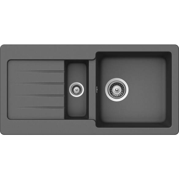 SCHOCK Küchenspüle, Cristalite Typos D-150S Croma, Granit | Komposit | Quarz, 86 x 43,5, Für den Einbau von oben, Spüle mit Becken nach rechts oder links einbaubar, Reinigungsfreundliche und widerstandsfähige Oberfläche, Material besteht aus bis zu 80% aus natürlichem Quarzsand (Granit), Mit automatischer Ablauföffnung (Excenterbedienung)