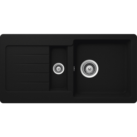 SCHOCK Küchenspüle, Cristalite Typos D-150S Onyx, Granit | Komposit | Quarz, 86 x 43,5, Für den Einbau von oben, Spüle mit Becken nach rechts oder links einbaubar, Reinigungsfreundliche und widerstandsfähige Oberfläche, Material besteht aus bis zu 80% aus natürlichem Quarzsand (Granit), Mit automatischer Ablauföffnung (Excenterbedienung)