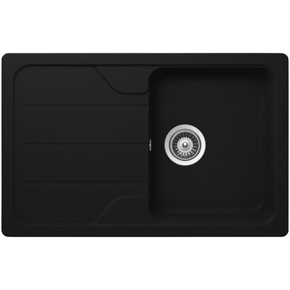 SCHOCK Küchenspüle, Formhaus D-100S Onyx, Granit | Komposit | Quarz, 78 x 50, Für den Einbau von oben, Spüle mit Becken nach rechts oder links einbaubar, Reinigungsfreundliche und widerstandsfähige Oberfläche, Material besteht aus bis zu 80% aus natürlichem Quarzsand (Granit), Mit automatischer Ablauföffnung (Excenterbedienung)