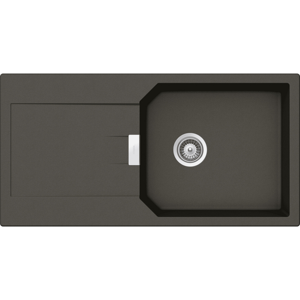 SCHOCK Küchenspüle »Manhattan D-100L-A«, asphalt, rechteckig, Granit/Komposit-Kunststein/Quarzstein, für den Einbau von oben – ab 60cm Unterschrank, Spüle reversibel – mit Becken nach rechts oder links einbaubar, reinigungsfreundliche und widerstandsfähige Oberfläche, Material besteht aus bis zu 80% aus natürlichem Quarzsand (Granit), mit automatischer Ablauföffnung (Excenterbedienung)