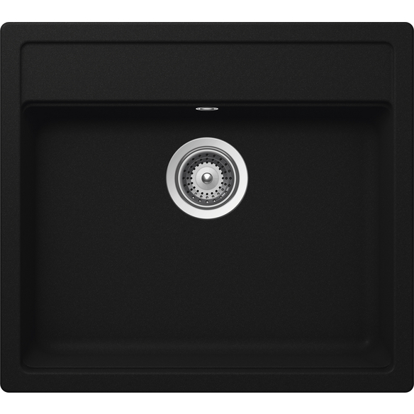 SCHOCK Küchenspüle, Nemo N-100 Onyx, Granit | Komposit | Quarz, 57 x 51, Für den Einbau von oben, Spülbecken mit Hahnbank hinten, Reinigungsfreundliche und widerstandsfähige Oberfläche, Material besteht aus bis zu 80% aus natürlichem Quarzsand (Granit), Mit automatischer Ablauföffnung (Excenterbedienung)