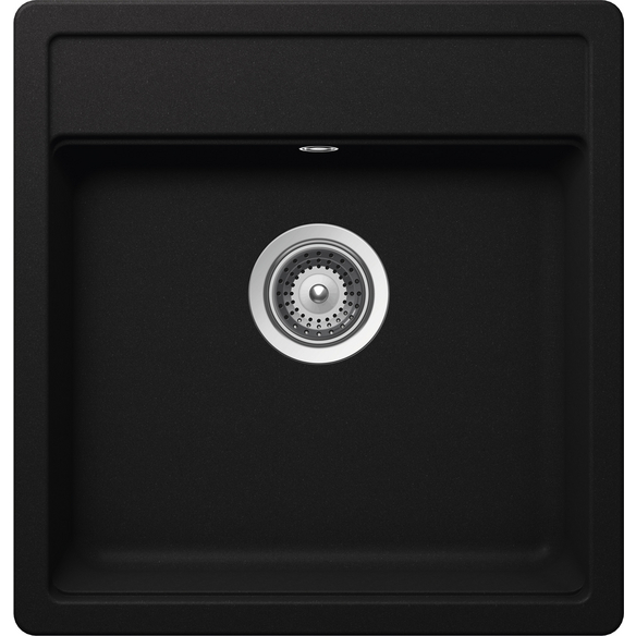 SCHOCK Küchenspüle, Nemo N-100S Nero, Granit | Komposit | Quarz, 49 x 51, Für den Einbau von oben, Spülbecken mit Hahnbank hinten, Reinigungsfreundliche und widerstandsfähige Oberfläche, Material besteht aus bis zu 80% aus natürlichem Quarzsand (Granit), Mit automatischer Ablauföffnung (Excenterbedienung)