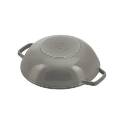 Profiköche schwören auf Kochgeschirr aus Gusseisen des französischen Herstellers Staub. Gusseisen besitzt hervorragende Wärmeleitungseigenschaften, denn es lässt sich stark erhitzen und gibt die Wärme konstant und gleichmäßig in den Innenraum ab. So werden in dieser Auflaufform von Staub zubereitete Speisen besonders saftig und aromatisch. Die gusseiserne Auflaufform in elegantem Schwarz eignet sich hervorragend zur Zubereitung von Aufläufen und Gratins, aber auch zum Anbraten auf allen Herdarten. Für Schmorgerichte oder köstliche Braten ist die ovale Auflaufform ebenfalls ideal. Die matt-schwarz emaillierte Innenseite verstärkt den Schmoreffekt, sodass der natürliche Eigengeschmack der Speisen optimal zur Geltung kommt. Mit einer Größe von 34 cm x 24 cm ist die Auflaufform groß genug für die Zubereitung eines Hauptgerichts für zwei Personen oder einer Beilage für vier Personen. Die an beiden Seiten angebrachten Griffe erleichtern die Handhabung. Präsentieren Sie Ihren Lieben saftige Schmorgerichte, knusprige Gratins und delikate Aufläufe in der formschönen und praktischen Auflaufform von Staub.