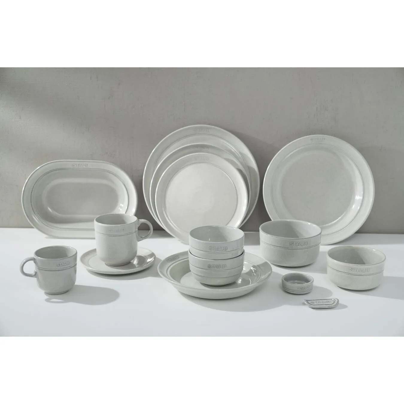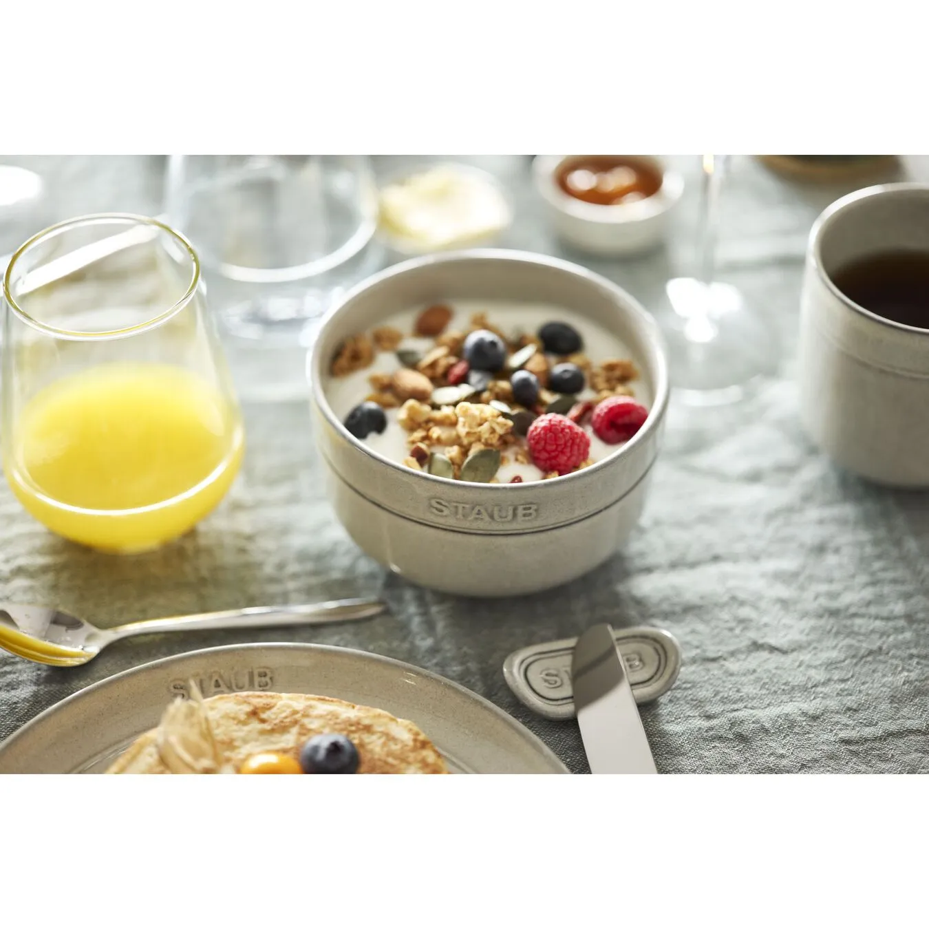 Ob zum Zubereiten von Dips oder Soßen, zum Aufbewahren von geschnittenem Gemüse, das Sie dann im richtigen Moment in die Cocotte geben, oder zum Servieren von Suppen und Salaten – kein anderes Keramikprodukt ist so vielseitig wie eine Schüssel. Dieses Modell ist einem elegant glänzenden Weiß gehalten, einer Farbe, die nach dem „Diamanten der Küche“, dem Weißen Trüffel benannt wurde. Die Schüssel mit einem Fassungsvermögen von 300 ml ist aus hochwertiger Keramik gefertigt und mit einer Emailleschicht überzogen. Dank dieser ist sie leicht zu reinigen sowie ausgesprochen langlebig und kratzfest. Sie kann gestapelt, in die Mikrowelle und die Spülmaschine gestellt werden und eignet sich zur tagtäglichen Verwendung. Das geradlinige Design passt in jede Küche, egal ob modern oder im Landhausstil eingerichtet. In der „Weißer Trüffel“-Keramikproduktlinie gibt es auch Teller und Tassen für ein vollständiges, harmonisches Tischgedeck. Diese Schüssel kann zu jeder Tageszeit zum Einsatz kommen: für das Müsli oder den Joghurt zum Frühstück, die Suppe oder den Salat zum Mittagessen oder einen Pudding oder Obstsalat am Nachmittag. Bei einer eleganten Dinnerparty könnten Sie eine Trüffelsuppe darin servieren, wie die mit Blätterteig bedeckte „Soupe aux Truffes“, die für den französischen Präsidenten Valéry Giscard D’Estaing kreiert wurde.